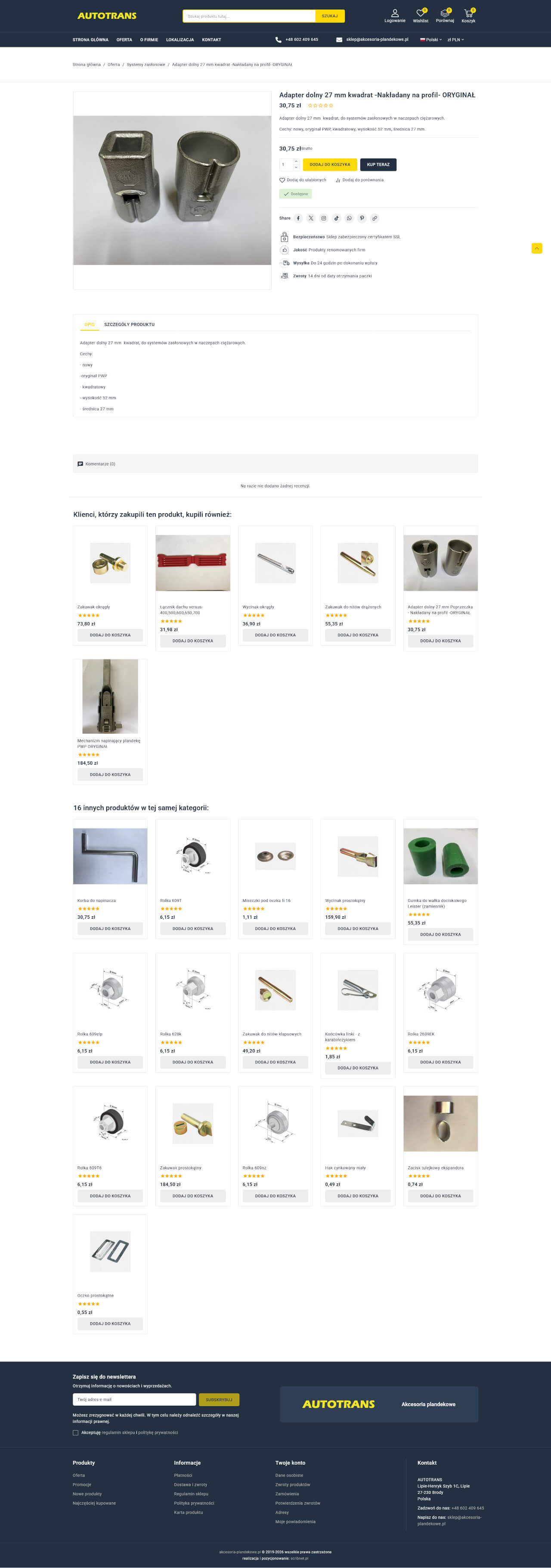 Dla firmy Autotrans zajmującej się sprzedażą akcesorów do produkcji plandek, wykonaliśmy prosty i przejżysty sklep internetowy pod adresem akcesoria-plandekowe.pl. Nasza praca polegała na instalacji i modyfikacji standardowego szablonu pod względem kolorystycznym oraz układu, a także konfiguracji podstawowych funkcjonalności jak metody płatności oraz sposoby wysyłki. Dodatkowo, na życzenie klienta zostały dodane kategorie oraz wszelkie atrybuty produktów i same produkty oferowane na sprzedaż.